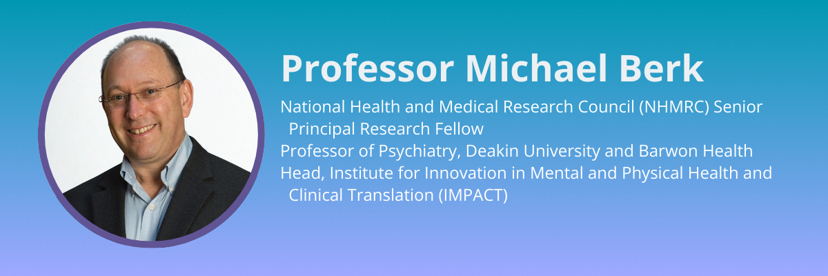 Professor Michael Berk is currently a NHMRC Senior Principal research Fellow and is Deakin Distinguished Professor of Psychiatry at Deakin University and Barwon Health, where he heads the Institute for Innovation in Mental and Physical Health and Clinical Translation (IMPACT). He also is an Honorary Professorial Research Fellow in the Department of Psychiatry, the Florey Institute for Neuroscience and Mental Health and Orygen Youth Health at Melbourne University, as well as in the School of Public Health and Preventive Medicine at Monash University. He has published over 1600 papers and is listed by Thompson Reuters ISI as highly cited (2015-2022). He has been awarded over $147M in grant funding. His major interests are in the discovery and implementation of novel therapies.